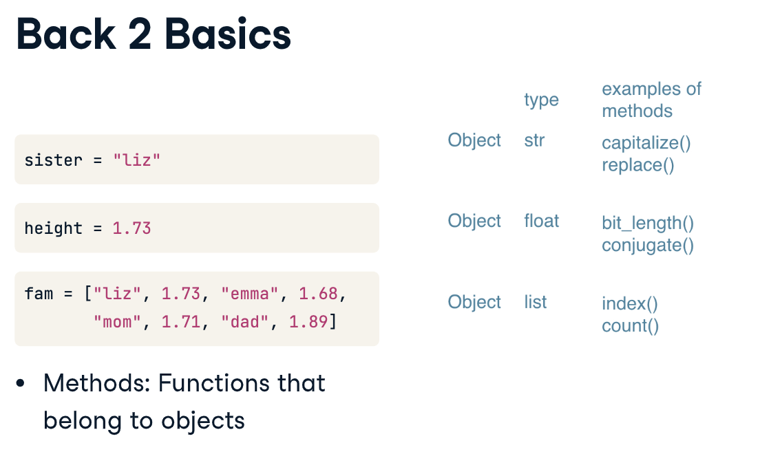 string, float, list 등 어떤 type이던지 모두 object 인데 method는 object에 적용된다.