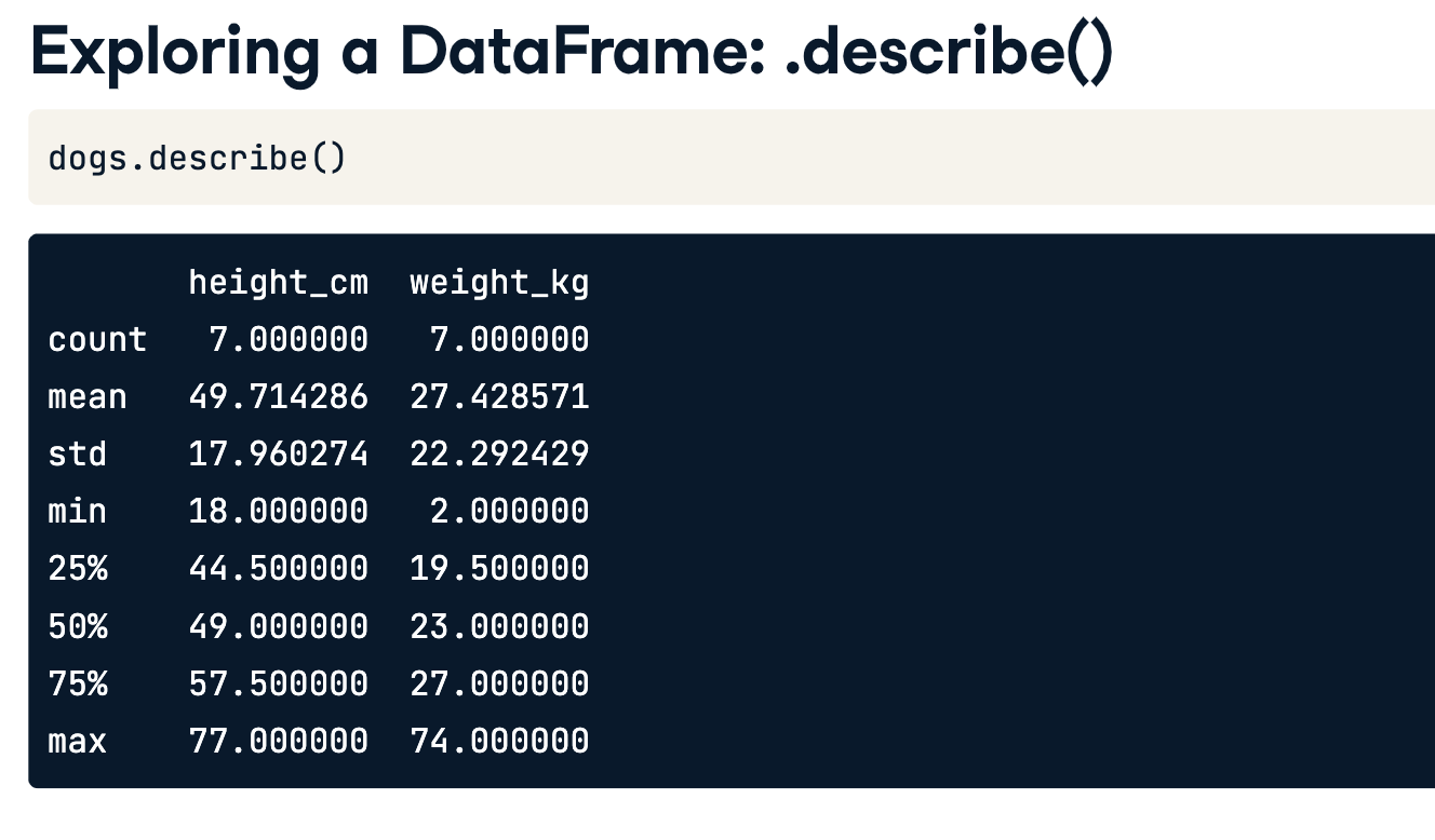 - DataFrames.describe()